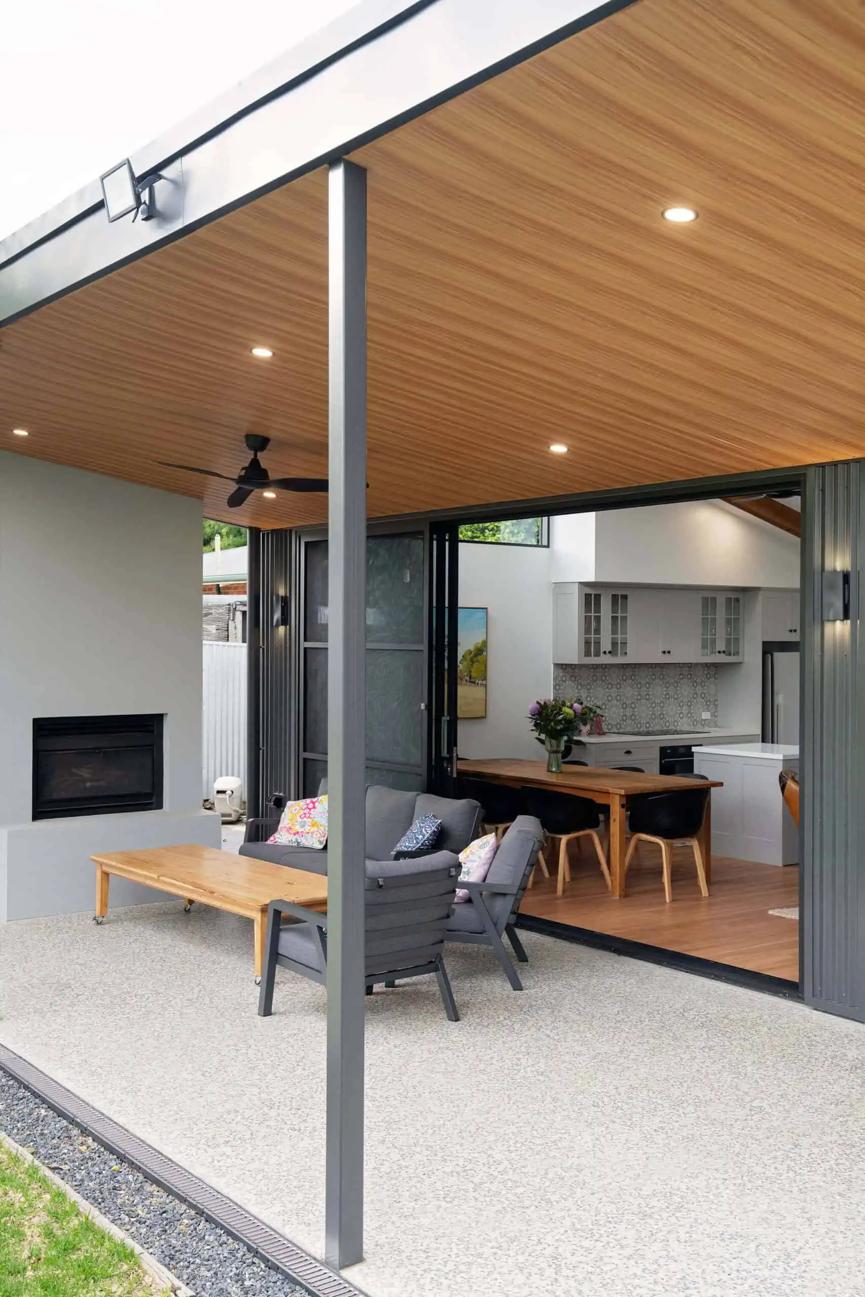 Also with absolute cm perfection in mind was a verandah and outdoor entertaining space, a custom outdoor fireplace and honed alfresco creating perfect indoor/outdoor living.